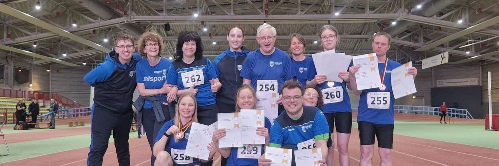 Wir waren alle in den Startlöchern und schon aufgeregt auf den Tag. Als wir um 08:30 Uhr dann an der Hartwig-Gauder-Halle ankamen, stieg die Aufregung immer mehr. Überall waren Para-Sportler aus ganz Deutschland zu sehen. Um 09:30 Uhr fand dann auch schon die erste Disziplin statt - die Masters am Weitsprungfeld: Unsere Senioren Frank Armbruster und Holger Hautzinger holten sich den 6. Platz mit 1,03m (Holger) und den 7. Platz mit 1,05m (Frank).